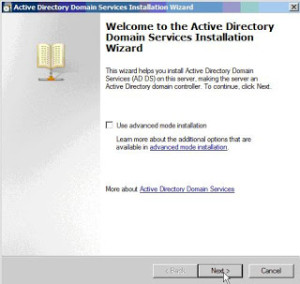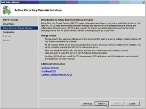 In the Active Directory Domain Services window read the provided information if you want to, and then click Next.