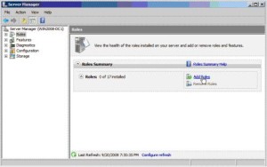 First Open Server Manager by clicking the icon in control panel from the Administrative Tools folder.