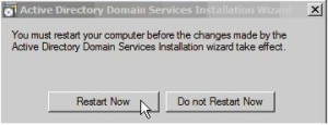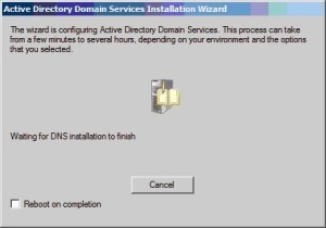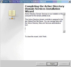 The wizard will begin creating the Active Directory domain, and when finished, you will need to press Finish and reboot your computer.