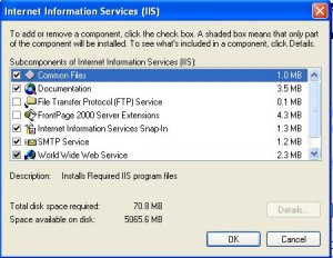 6) In Windows Component selection, ensure that the Internet Information Services (IIS) check box is selected, and then click OK to install the components that you selected.